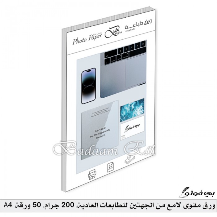 ورق مقوى لامع عالي الجودة مقاس A4 سماكة 200 جرام من الجهتين يستخدم مع الطابعات العادية