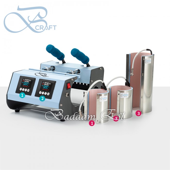 مكبس أكواب التسامي الجديد المزدوج مع 3 سخانات أكواب قياسية. وتم اضافة قالبين خاصة بأكواب 40 اوز ليصبح اكثر شمولا