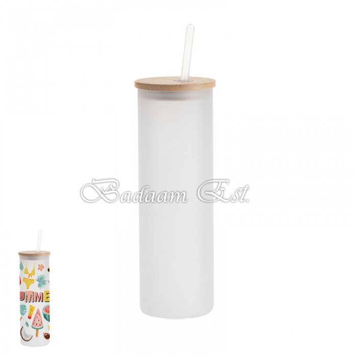 كوب زجاج ثلجي بغطاء خشبي 14  أونصة مع مصاص خاص بالكوب